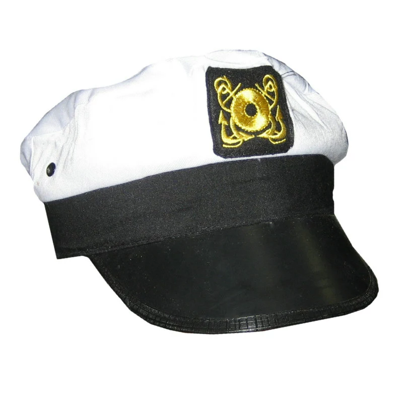 Cloth hat with traditional patch attached. Recognizable for the handsome commanding officer in the navy. Adjustable, one size fits most adults.