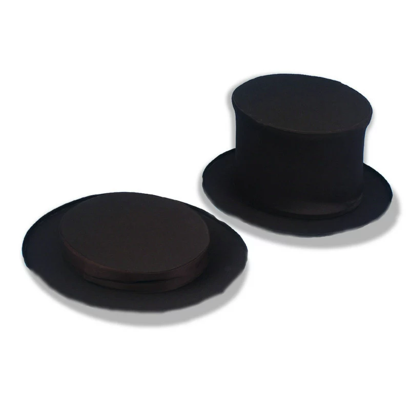 Traditional Black Top hat, that collapses when not in use for easy storage. One size fits most children.