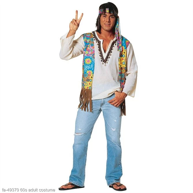 Go back to the 60’s where everything was popular! This Hippie Dude Adult Costume includes a shirt with attached vest and a matching headband. Peace out!