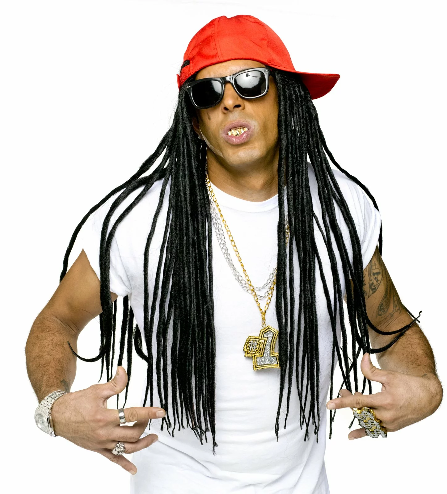 - Hat with dreads.