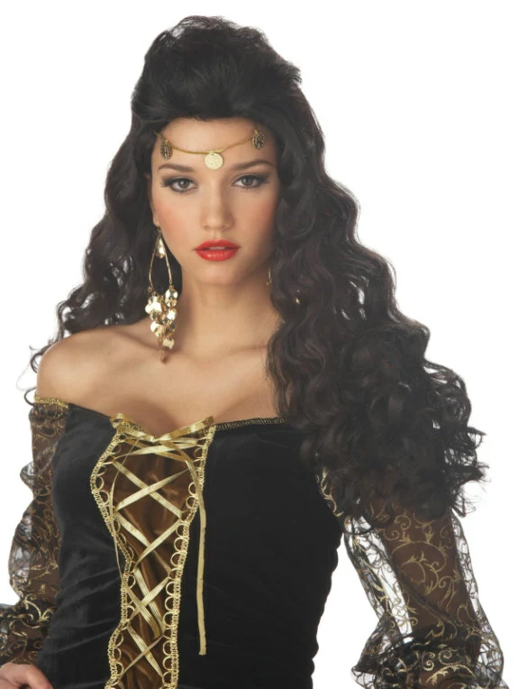 Clear your mind, think of the one thing in this world you want the most, and the split the deck of cards in half. Oh my, the cards tell me you want beautiful hair! The Madame Destiny Wig features long, flowing, wavy, dark brown hair with an attached gold coin accessory. Guaranteed to be mind-boggling this Halloween!