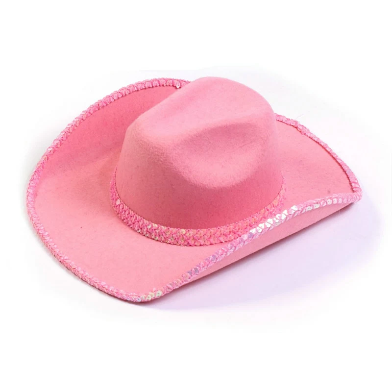 The Pink Sequin Cowboy Hat is 100% Polyester and features pink sequin trim. Whether you’re making your way to the rodeo, or saddling up to hit the trails, you’ll be ready to rope ’em in this hat!