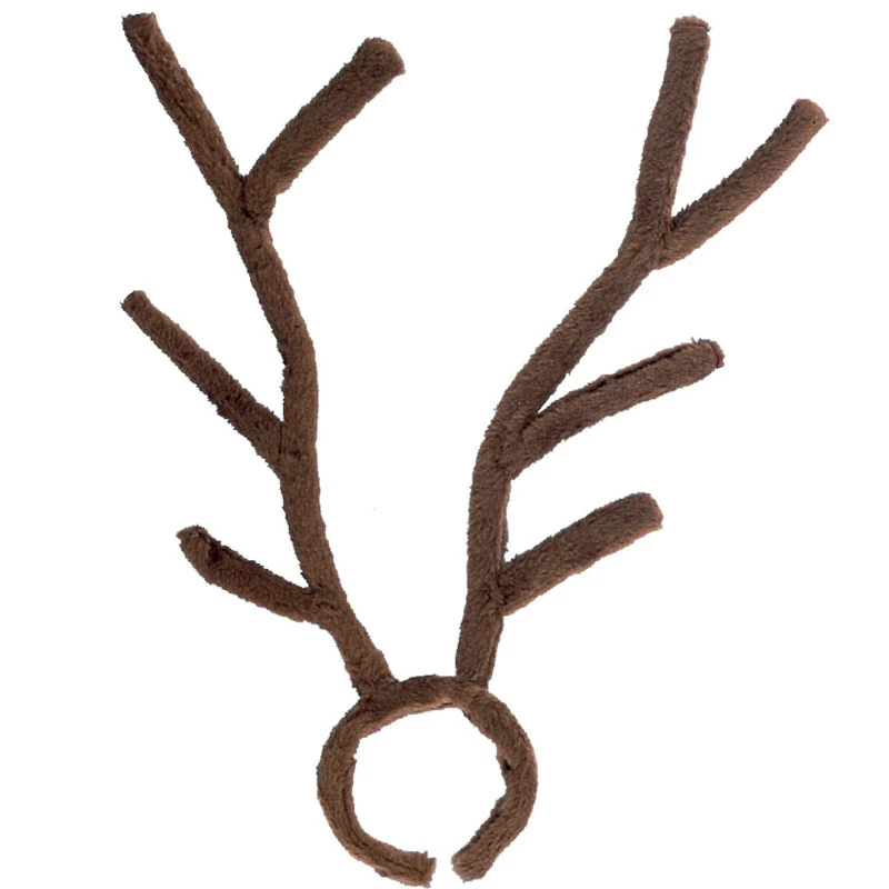 Cute plush Reindeer Antlers make anytime festive. Brown antlers are attached on a headband.