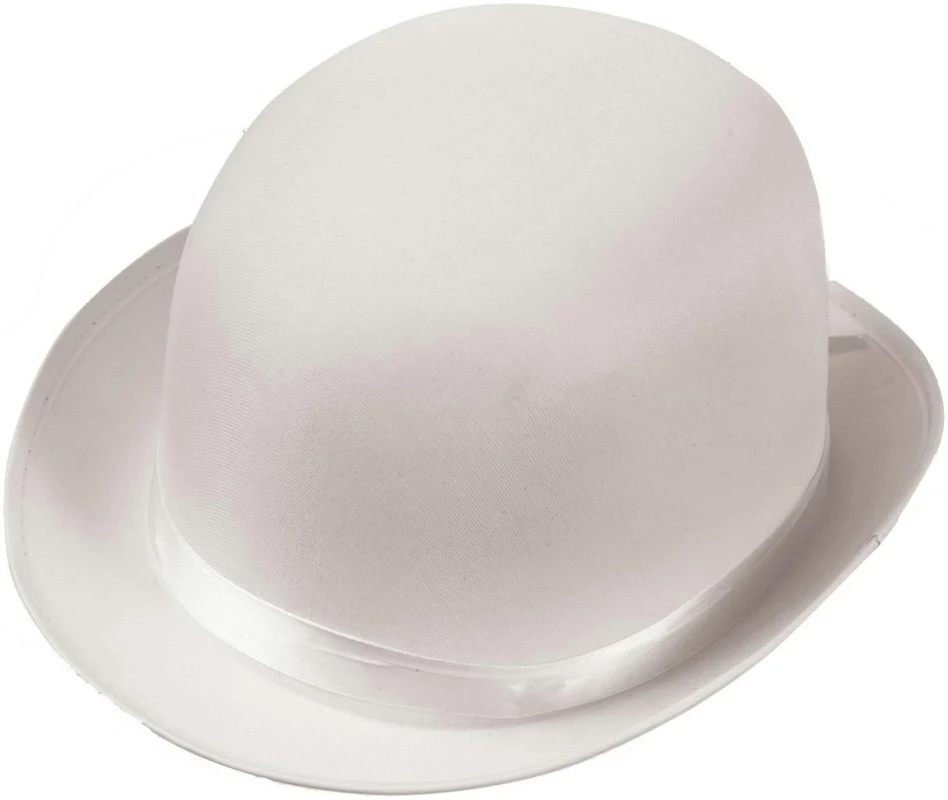 Cap off a historical or jockey disguise with this fine bowler. Great for a variety of costumes, from British to Kentucky Derby or even Steampunk looks. Includes one white derby hat with matching white satin ribbon trim.
