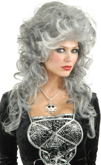 Who says witches need to be ugly? Amp up your Halloween disguise with this glam wig. Includes one voluminous, curly silver grey wig.