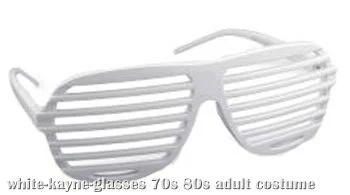 Pair of White Slotted GlassesFlash back to the 1980s with these glasses! The white, slotted glasses are made from durable plastic and can be worn long after Halloween is over. Also great for a Kanye West costume!